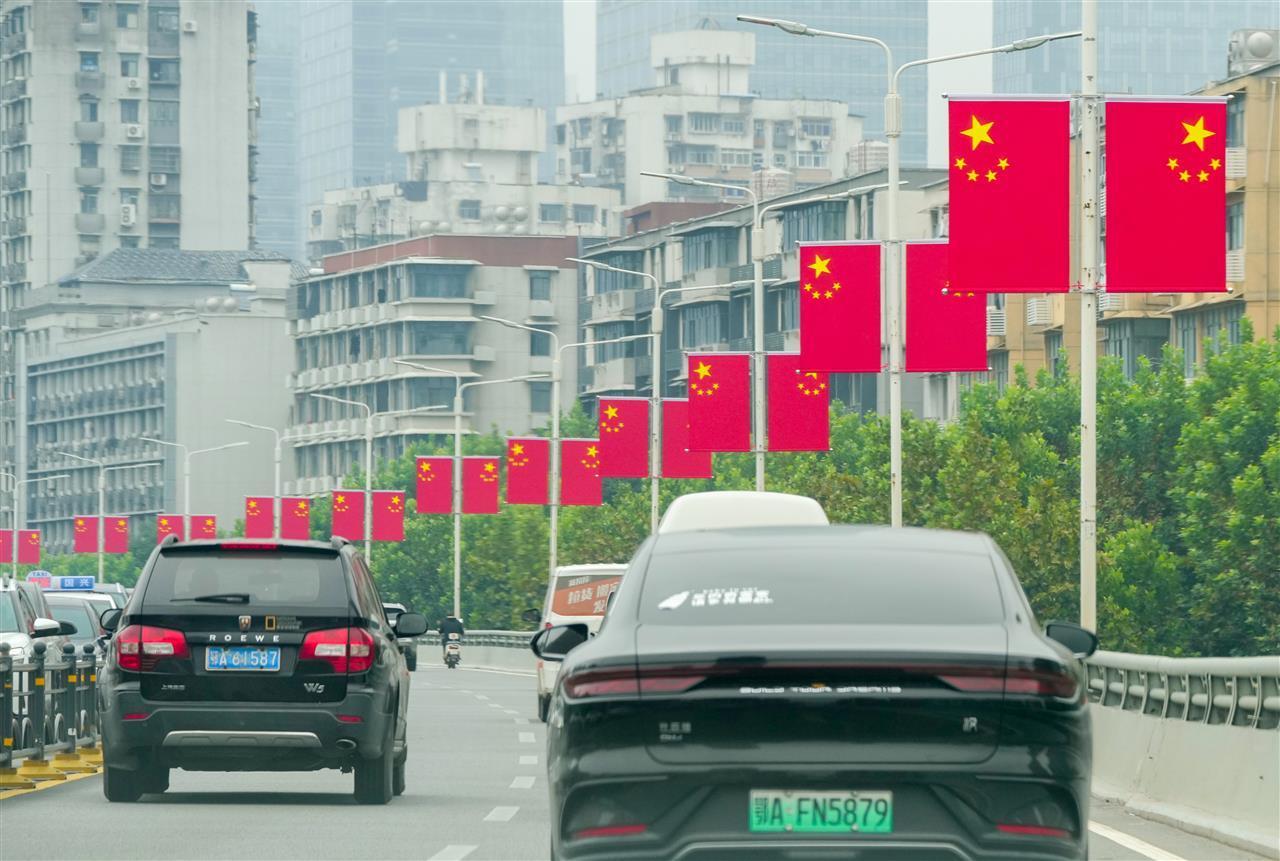 2025年國慶將至,又逢抗戰勝利八十周年紀念日、臺灣光復日,為展現武漢城市風貌,營造莊嚴、熱烈的節日氛圍,該市在主要道橋、窗口地帶、特色街區和商業體周邊路段路燈燈桿上懸掛國旗。