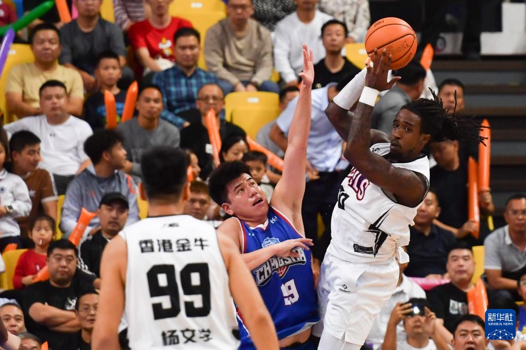 9月22日,香港金牛隊球員約書亞·卡爾頓(中)在比賽中上籃。