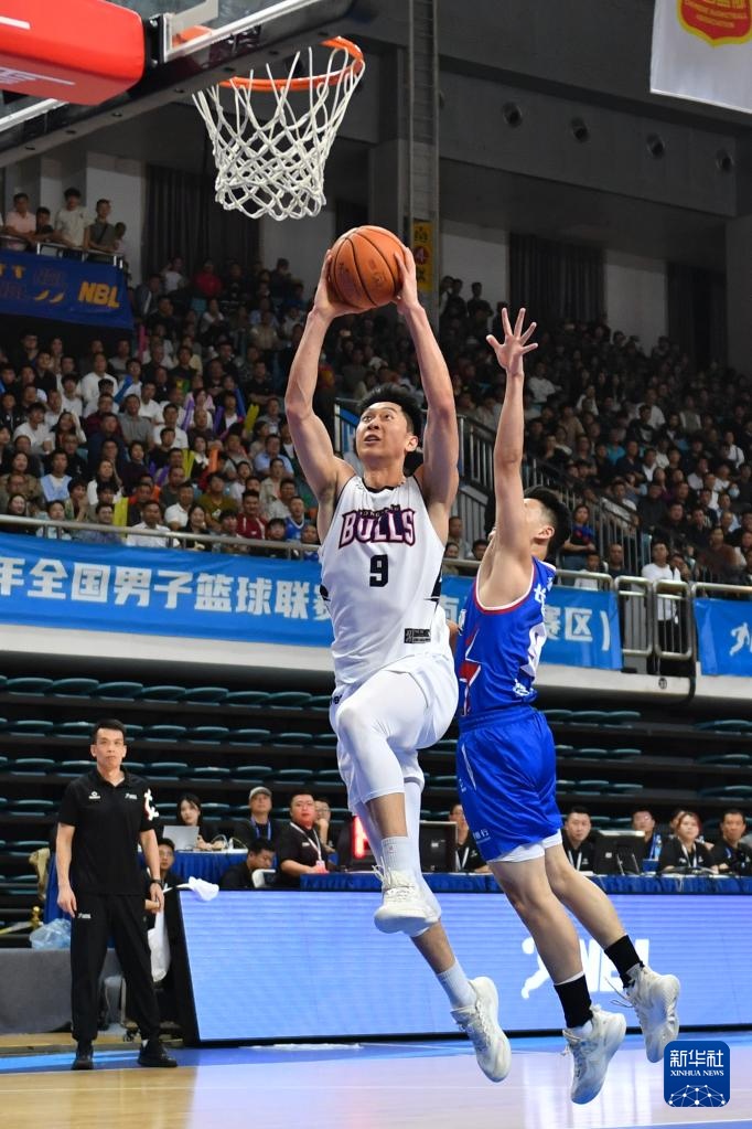 9月22日,長沙電信勇勝隊球員馮秋瑞(右一)在比賽中上籃。