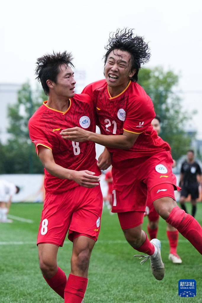 9月22日,北京航空航天大學(xué)隊球員程曦陽(前右)在比賽中慶祝進(jìn)球。