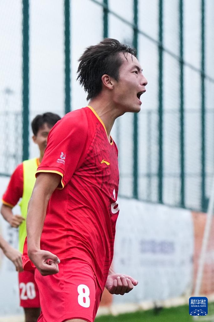 9月22日,北京航空航天大學(xué)隊球員程曦陽在比賽中慶祝進(jìn)球。