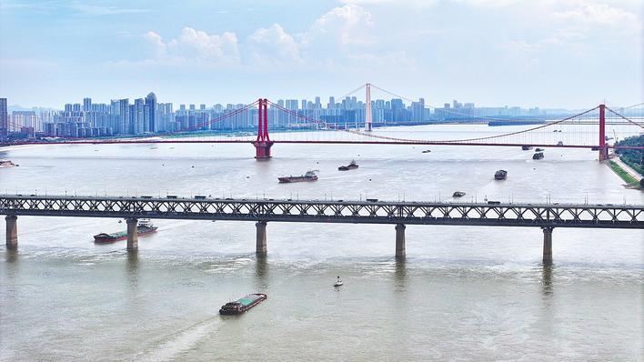 近日,長江武漢段迎來航運高峰。江面貨輪有序通過多座長江大橋,與橋上呼嘯而過的列車、川流不息的汽車交相輝映,構成一幅“水陸并行、多維聯動”的立體交通圖景,彰顯長江經濟帶的蓬勃活力。 (湖北日報全媒記者 陳少哲 攝)