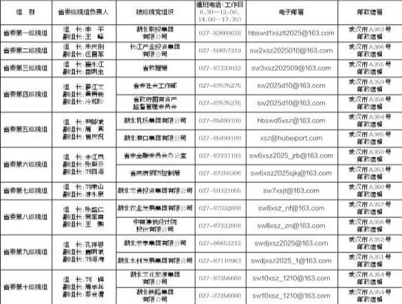 據(jù)悉,本輪巡視時間省屬企業(yè)為60天左右、省直單位為40天左右,期間設(shè)立值班電話、郵政信箱、電子郵箱、“荊楚碼上巡”,主要受理反映被巡視黨組織領(lǐng)導(dǎo)班子及其成員、下一級黨組織主要負(fù)責(zé)人和重要崗位領(lǐng)導(dǎo)干部問題的來信來電來訪,重點(diǎn)是關(guān)于違反政治紀(jì)律、組織紀(jì)律、廉潔紀(jì)律、群眾紀(jì)律、工作紀(jì)律、生活紀(jì)律等方面的舉報(bào)和反映。巡視省屬企業(yè)受理信訪時間截止到2025年11月21日,巡視省屬單位受理信訪時間截止到2025年11月1日。