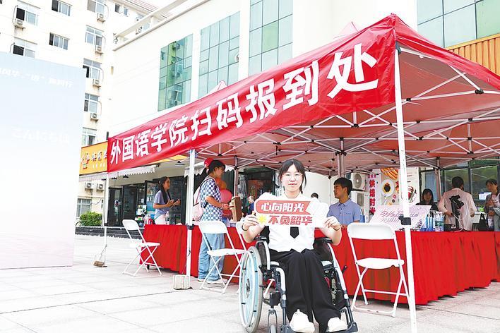 “學會接納自己,努力向前奔跑?!?月21日,在湖北工業大學的一間宿舍里,來自孝感的2025級本科新生張沁影坐在輪椅上,面帶笑容地講著自己的成長故事。