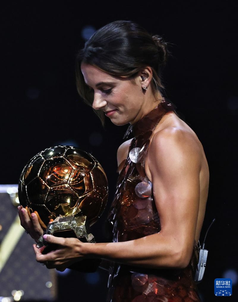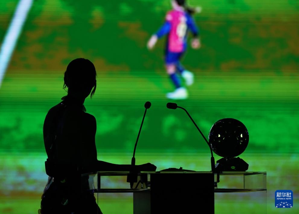 9月22日,巴塞羅那隊西班牙球員邦馬蒂在頒獎儀式上手捧獎杯。她獲頒女足金球獎,這是她連續(xù)第三年獲得該獎項。