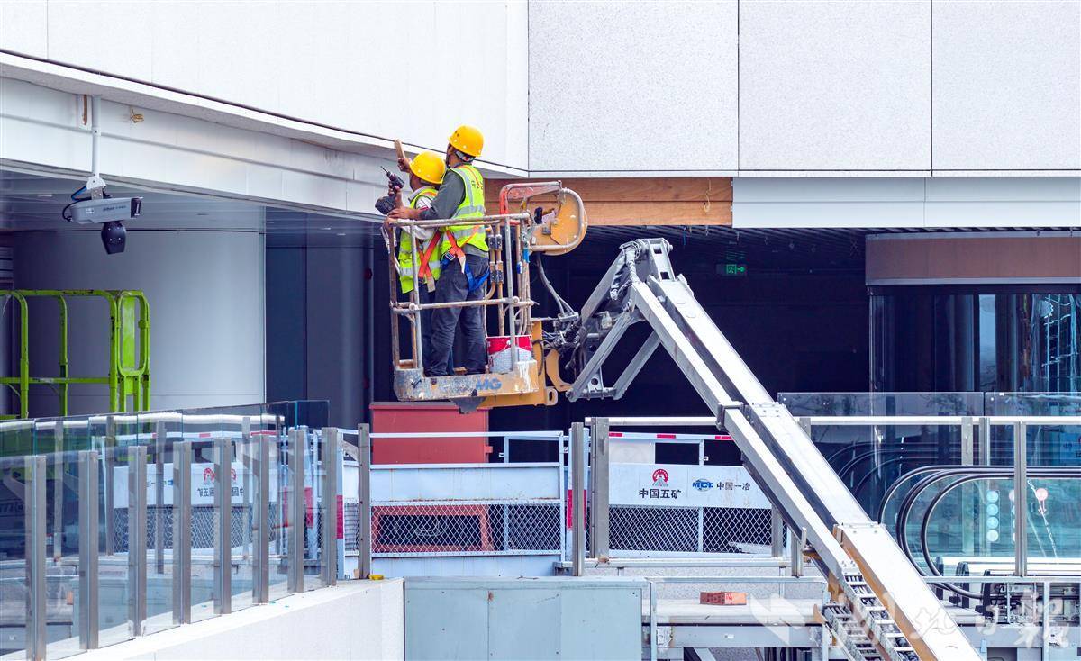 9月22日,位于宜昌市夷陵區(qū)龍泉鎮(zhèn)的宜昌北站站前廣場(chǎng)上,工人們正有序進(jìn)行電梯調(diào)試、草坪種植等收尾作業(yè)。目前,北站站房主體結(jié)構(gòu)已全部完工,裝飾裝修工程基本結(jié)束,全面進(jìn)入內(nèi)部設(shè)施設(shè)備安裝階段,為車站正式開通運(yùn)營(yíng)做最后沖刺。據(jù)悉,車站規(guī)模達(dá)9臺(tái)20線,定位為特等站。站房采用地下兩層、地上兩層結(jié)構(gòu):地下為預(yù)留軌道交通、出站通道及城市通廊,地上則涵蓋站臺(tái)、落客層和高架候車層,功能布局清晰、流線高效。北站站房以“兩岸連山、高峽平湖、大國(guó)重器、山水典藏”為設(shè)計(jì)理念,造型借鑒三峽大壩雄姿,猶如大壩泄洪時(shí)江水奔涌的壯闊畫卷。(湖北日?qǐng)?bào)全媒記者 劉曙松 通訊員 岳黎 攝)