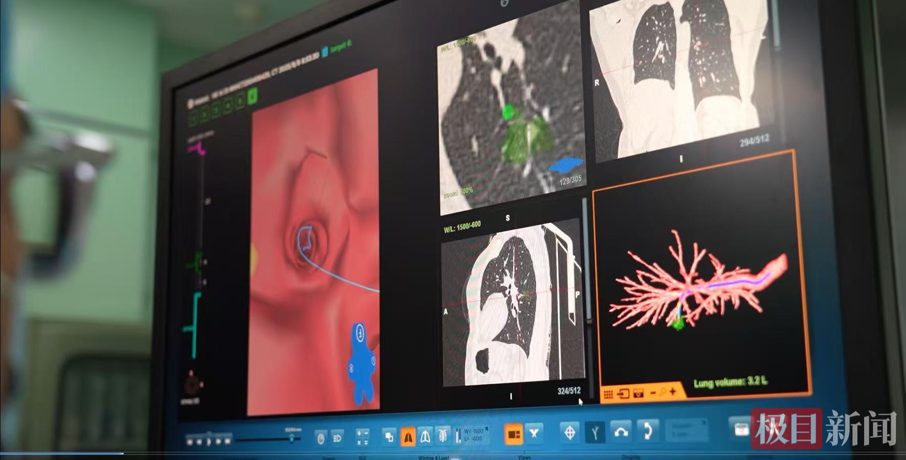 呼吸與危重癥醫學科主任倪吉祥介紹,術前,團隊基于患者的肺部CT影像,運用先進的三維重建技術,成功構建其完整的氣管支氣管樹虛擬模型,精準規劃了支氣管鏡入路路徑,并生成三維動畫,為手術做好了充分準備。術中,增強顯示光學全肺診療導航LungPro系統就像為醫生安裝了一套“肺部GPS導航系統”,通過術前精準規劃和術中實時導航,可以直達傳統支氣管鏡難以觸及的肺部邊緣病灶,實現精準治療。與傳統手術相比,該項技術通過人體自然腔道的方式進行治療,不出血,氣胸發生率低,可最大程度保留肺組織、減少肺功能損傷,為多原發性肺癌、術后復發,或者心肺功能不耐受外科手術治療的肺癌患者提供了新的治療方式。