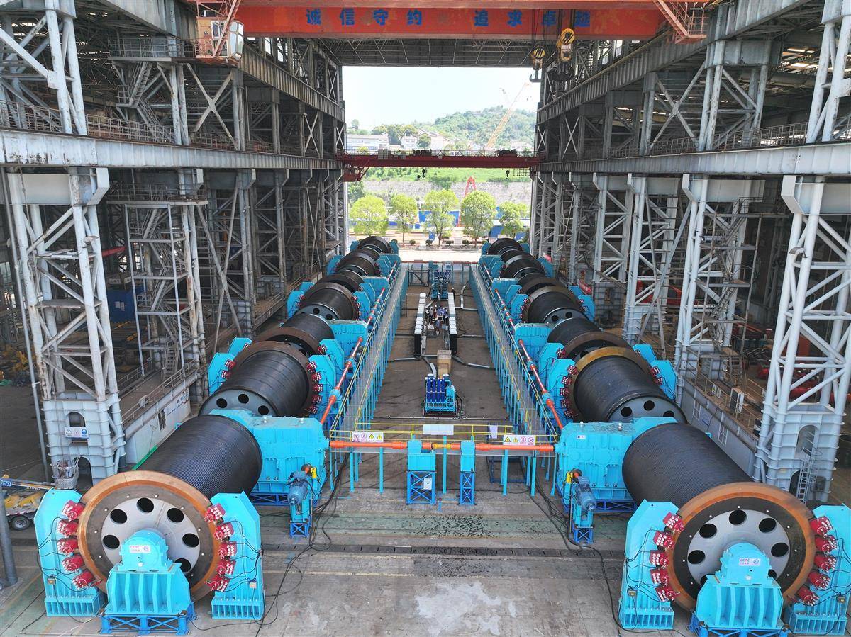 此次交付的主提升機,是升船機的“動力中樞”。在研發制造過程中,葛洲壩機船公司項目團隊攻克多項世界級技術難題。為消除焊接應力,團隊自主設計投建6×6×19米可調式臺車燃氣退火爐,滿足“巨無霸”卷筒整體退火需求;單個卷筒經6.3米數控臥式車床35天持續加工,實現微米級精度;焊接環節實現機器人全自動化突破,縱縫、環縫等焊縫經100%無損探傷一次合格。