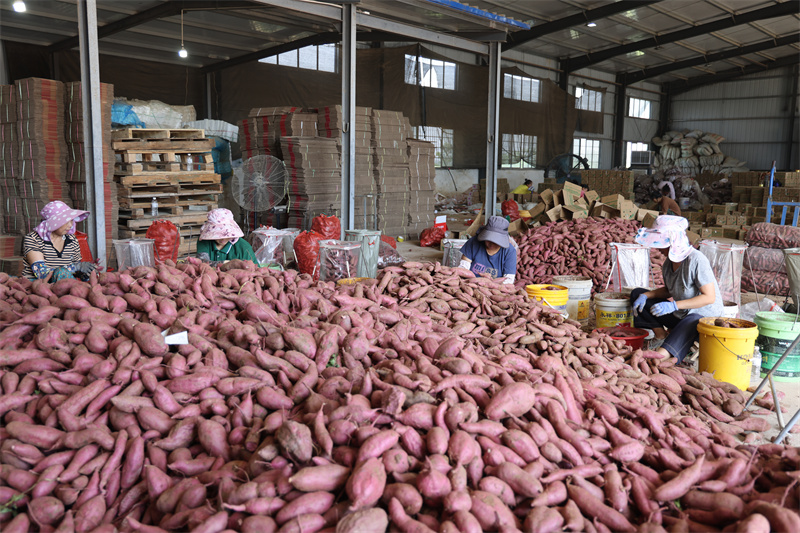 線下銷售暢通的同時,線上渠道同樣表現搶眼。在流水鎮余棚村電商產業園,20余名工人正在將村民運來的紫薯分揀、打包、裝箱,等待快遞公司前來發貨。宜城市流水鎮余棚村電商產業園相關負責人范玲表示,今年以來已成功銷售紫薯100多萬斤,預計這一銷售勢頭將持續到12月份。