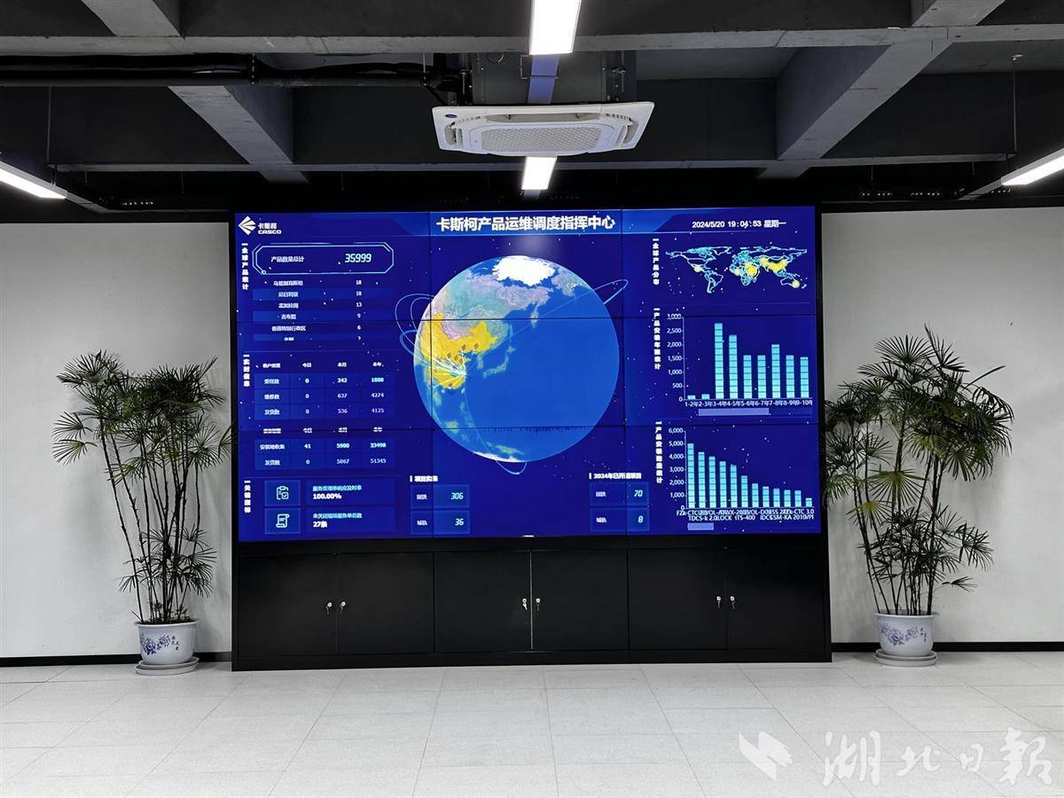9月18日,黃陂區武漢軌道交通產業創新基地,卡斯柯全國運維中心內的產品運維調度指揮中心大屏上,顯示著其產品在全球分布、安裝、維修等情況?,F場,還有基地內中車長客的工作人員,前來領取設備,準備應用在地鐵12號線的車輛裝配上。