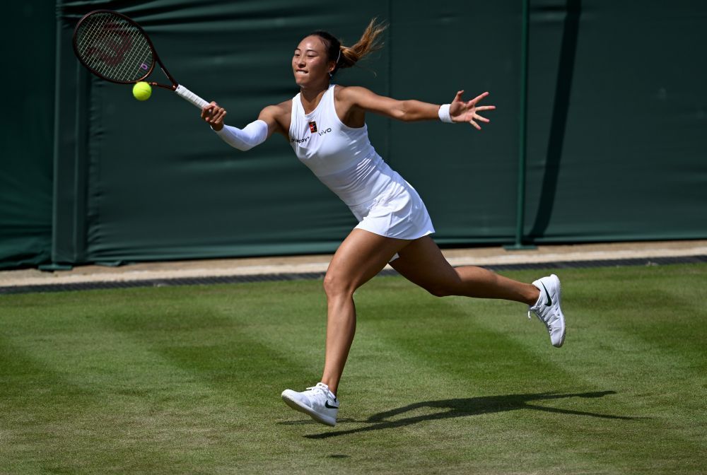 7月1日,鄭欽文在英國倫敦舉行的2025溫布爾登網球公開賽女子單打首輪比賽回球,當天鄭欽文1比2不敵捷克選手西尼亞科娃,無緣晉級。新華社記者 李穎 攝