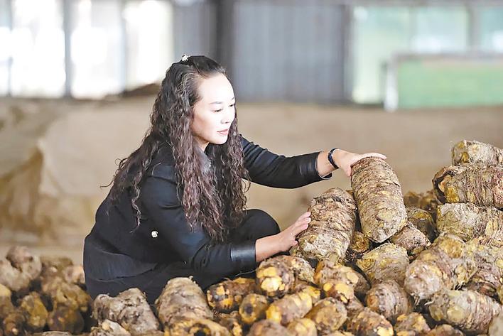 “利川繡繡”在檢查大黃品質。