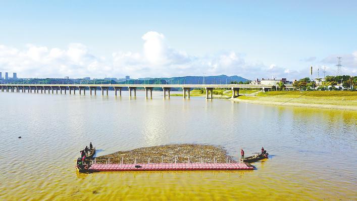 9月20日,清漂隊員在丹江口庫區鄖陽段漢江水域清理漂浮物。連日來,受強降雨影響,十堰市丹江口庫區鄖陽段漢江水域出現漂浮物,鄖陽區組織清漂隊進行集中清理。多年來,該區嚴格落實河湖長制,抓好河湖巡查工作,確保“一泓清水永續北上”。 (視界網 曹忠宏 攝)