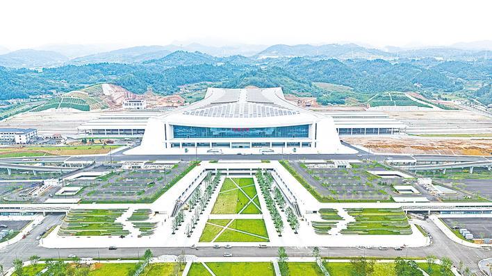 9月22日,位于宜昌市夷陵區龍泉鎮的宜昌北站站前廣場上,工人們有序進行電梯調試、草坪種植等收尾作業。目前,北站站房主體結構已全部完工,裝飾裝修工程基本結束,全面進入內部設施設備安裝階段,為車站正式運營作最后沖刺。據悉,車站規模達9臺20線,定位為特等站。 (湖北日報全媒記者 劉曙松 通訊員 岳黎 攝)