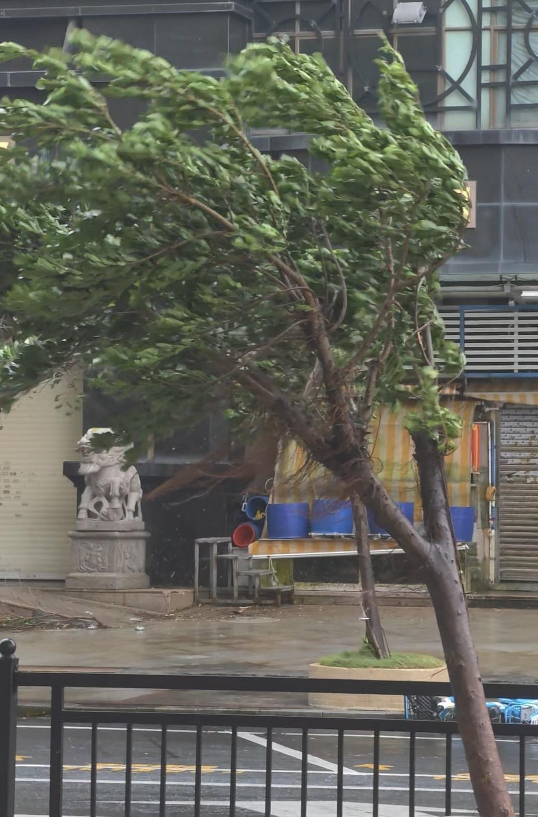 24日上午,極目新聞?dòng)浾咴谥楹O阒迏^(qū)情侶路附近看到,路邊有直徑近20厘米粗細(xì)的樹木已出現(xiàn)倒伏情況,路上隨處可見被強(qiáng)風(fēng)吹落的斷枝,商戶此前在門外側(cè)粘貼的膠帶已被大風(fēng)吹掉,人行走在路上完全無法正常行走,雨水打在臉上感到陣陣疼痛。