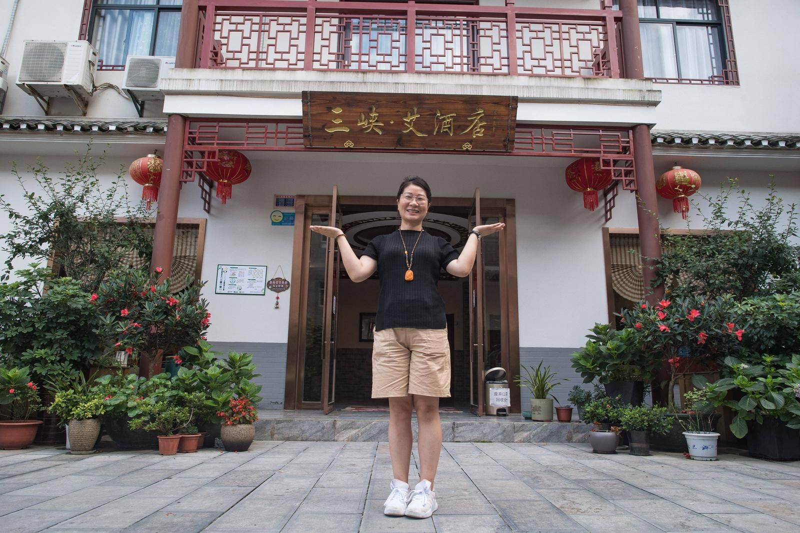 謝蓉展示自己創辦的“三峽·艾”主題民宿酒店。新華社記者 肖藝九 攝