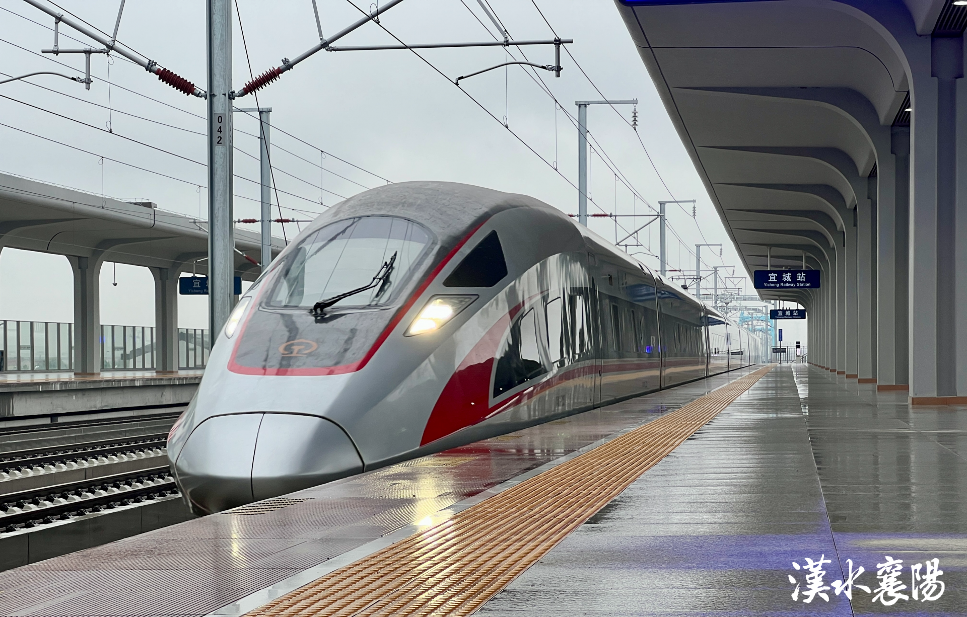 ▲襄荊高鐵試運行動車組駛入宜城高鐵站