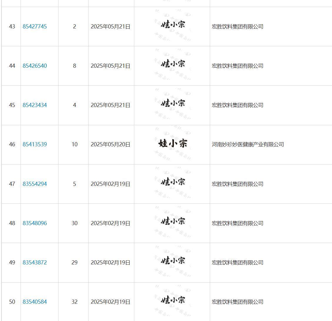 宏勝飲料集團(tuán)申請(qǐng)的娃小宗商標(biāo)