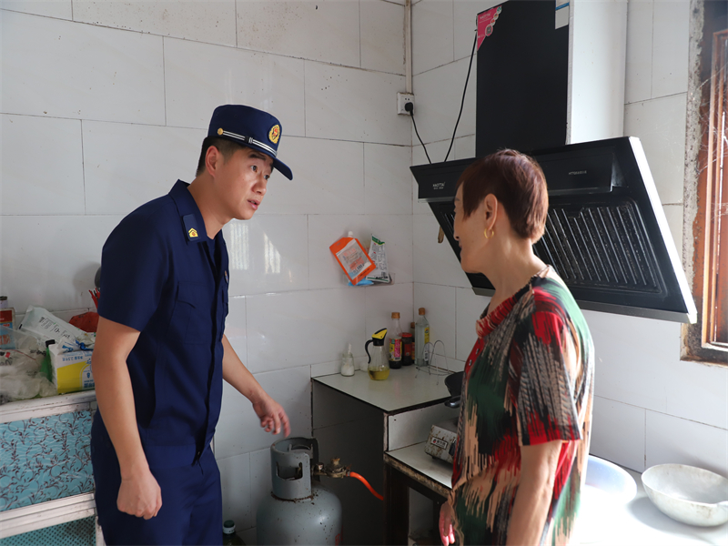 在入戶宣傳環節,消防救援人員結合家庭用火用電特點,仔細檢查居民家中電線、插座、燃氣灶具等設施,并以拉家常的方式,用通俗易懂的語言普及消防安全知識。“外出一定要記得關電源、關燃氣”“廚房用火千萬不能離人”“電動車絕不能在室內或樓梯間充電”……每到一戶,消防宣傳員都反復叮囑居民注意日常消防安全細節,幫助查找火災隱患,講解防火、滅火、逃生相關知識。期間發現部分村民家中存在電線未穿管保護、液化氣軟管需更換等情況,消防救援人員及時對接村委會協調幫助整改火災隱患,并叮囑村民秋冬季節要注意用火用電安全。