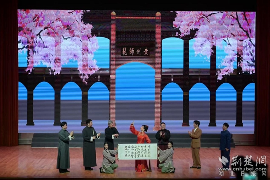 據悉,《霜天紅燭》是黃岡師范學院原創的一臺融紅色文化和教師教育題材于一體的大型黃梅戲音樂劇精品劇目,該劇以百廿老校“甘于堅守”的發展歷程為背景,講述了以“黃師蘭”為代表的教師群體在革命戰爭年代不怕犧牲堅持辦學、“一根教鞭伴終身”、“薪火相傳、初心不改”的感人故事。