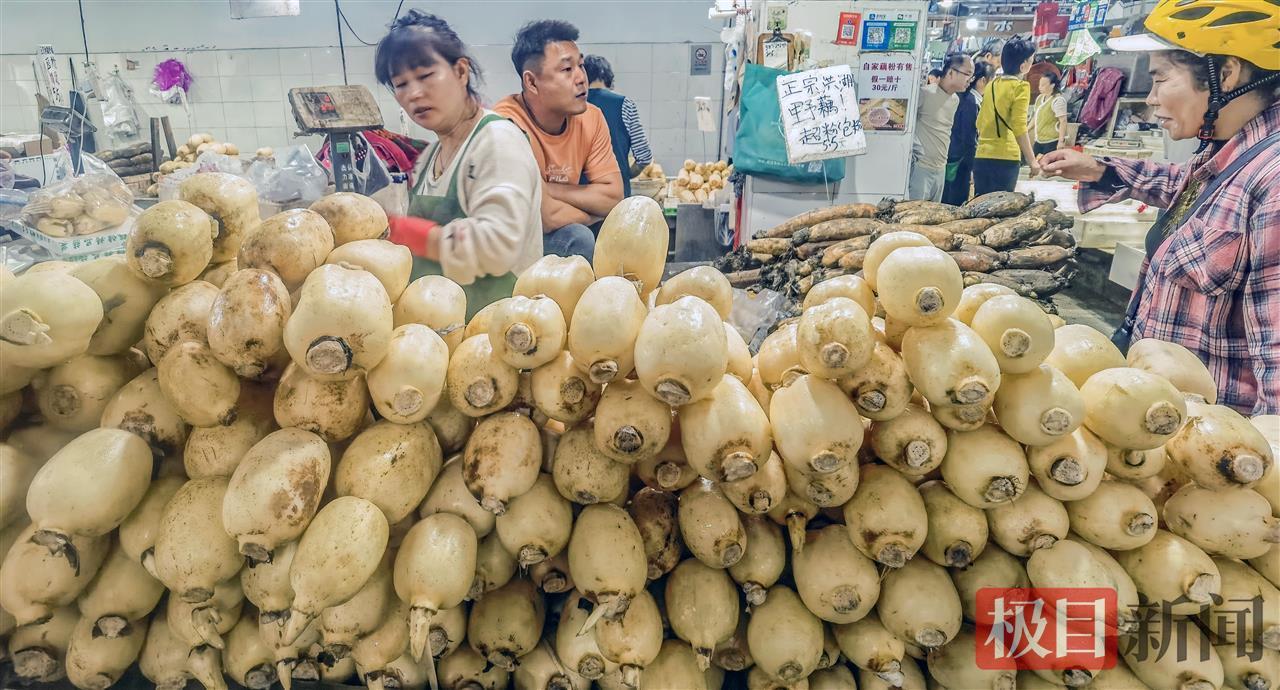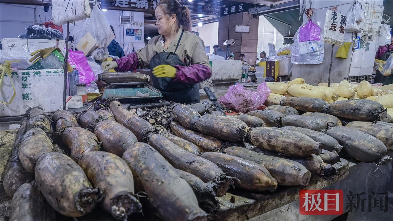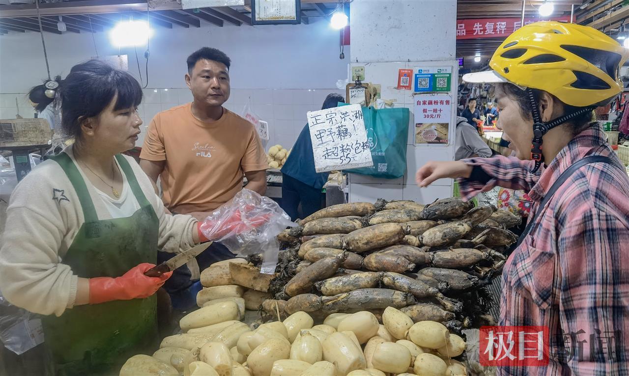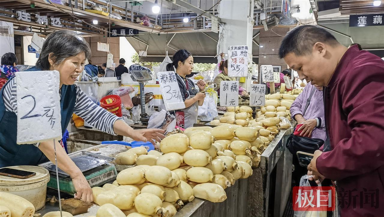 9月25日,武漢市洪山區(qū)新竹路市場蓮藕區(qū),各個(gè)檔口上,裹滿泥巴的扁長蓮藕,胖墩墩、圓滾滾的大白蓮藕,一堆一堆地看上去非常誘人。蓮藕每市斤1元到5元的價(jià)格,讓市民感到比往年同期便宜了許多。國慶、中秋雙節(jié)臨近,武漢生鮮市場對(duì)新鮮蓮藕的需求激增。據(jù)悉,受氣候條件好等多種因素影響,今年我省荷藕種植喜獲豐收,量大價(jià)優(yōu),是當(dāng)前武漢蓮藕市場的特點(diǎn)。目前,武漢及周邊地區(qū)蓮藕荷塘采收的大量蓮藕,每天以價(jià)廉物美的鮮嫩美味快速直達(dá)百姓餐桌,豐富市民的節(jié)日生活。