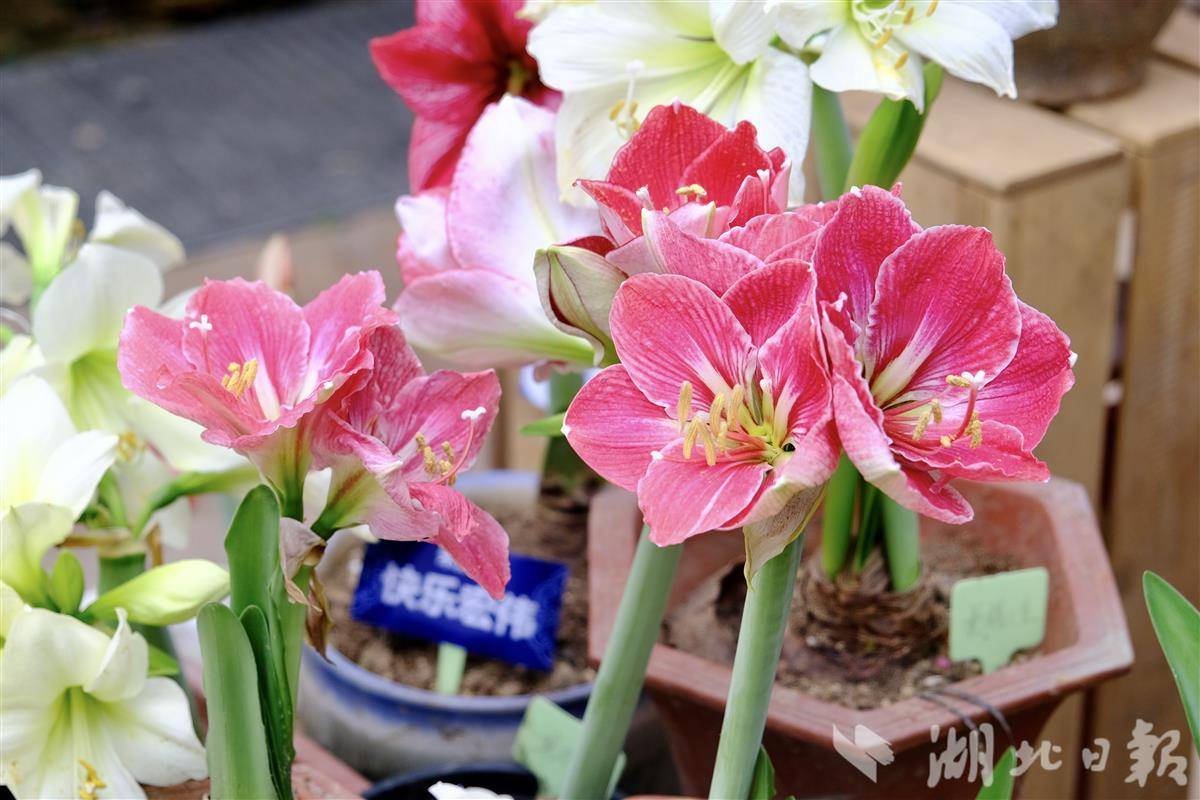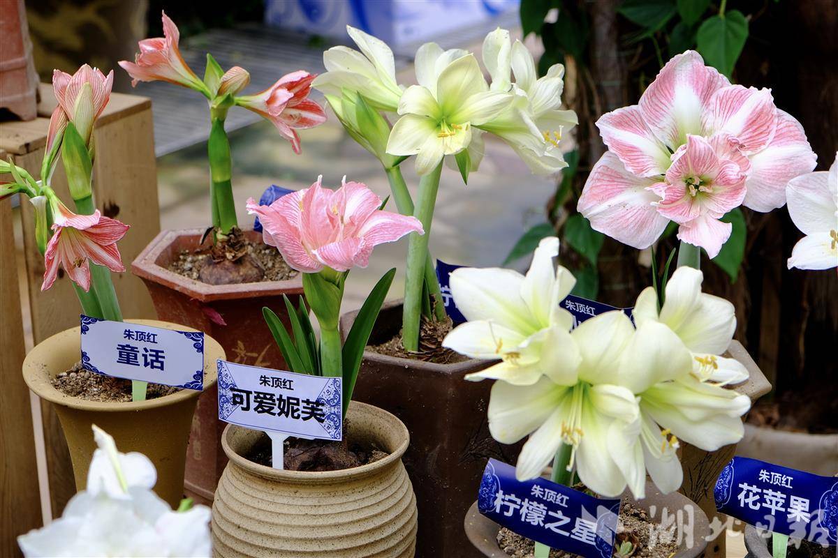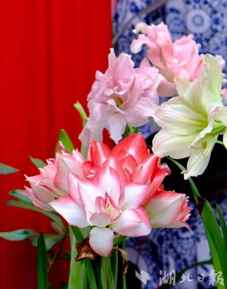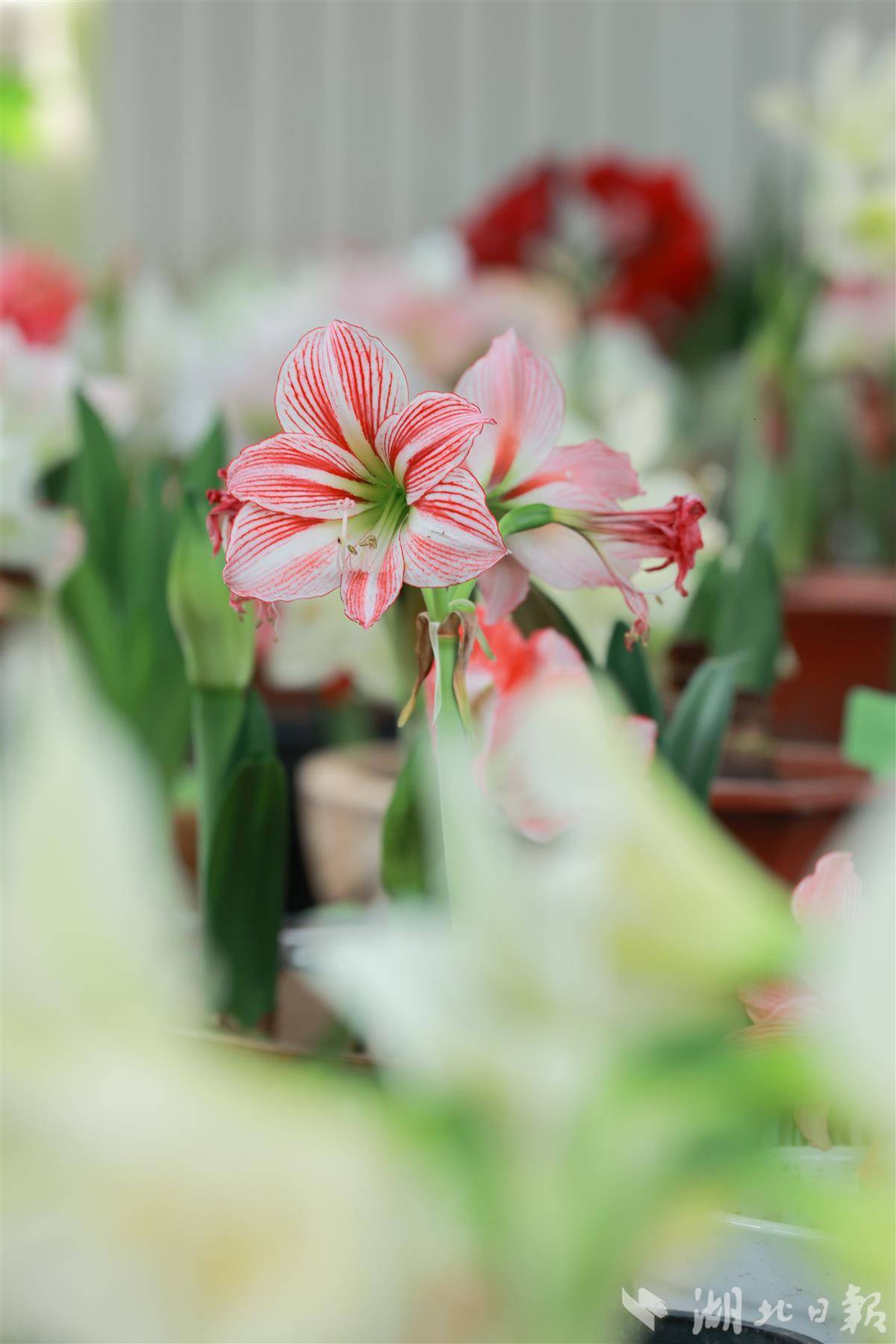 武漢植物園景觀溫室內(nèi),朱頂紅也為國慶增添了喜慶氛圍。