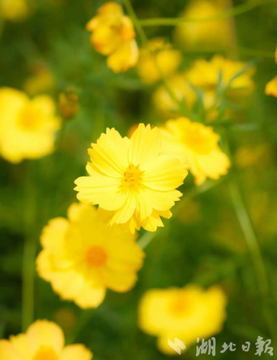暖橙與明黃的硫華菊隨風(fēng)搖曳,映襯著百日草的斑斕花浪,與湖畔的光影相映,如詩如畫。一大片的橙色、黃色、紅色組成多巴胺活力花園,用明媚點(diǎn)亮了秋天。漫步花間小徑,沐浴花香,感受自然與色彩的浪漫碰撞。