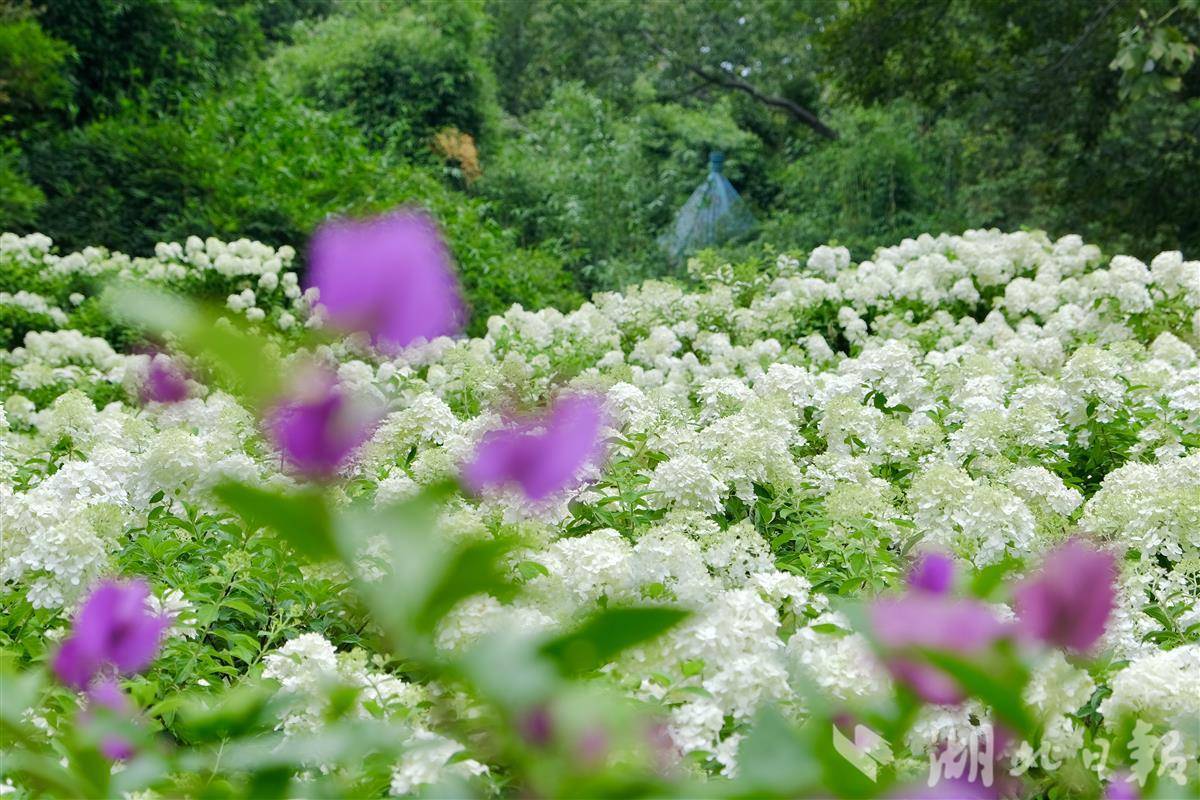 目前圓錐繡球呈現(xiàn)的是清新浪漫的奶油白和淺綠色,國慶假期晝夜溫差變大,可能會讓變色過程加速上演,游客有望目睹圓錐繡球從清新淡雅到濃墨重彩的漸變過程,屆時將非常有視覺沖擊力。“可能今天還是小清新,明天就變成復(fù)古港風(fēng)了。”武漢植物園園藝師介紹,圓錐繡球展將持續(xù)至11月中下旬,不同時間來可以解鎖不一樣的賞花體驗(yàn)。