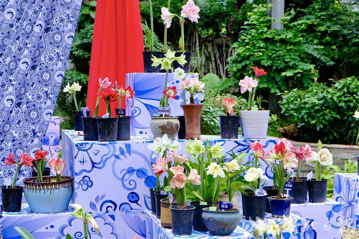 園藝師將朱頂紅與青花瓷紋樣元素相結(jié)合,用現(xiàn)代展陳方式演繹傳統(tǒng)美學(xué)。