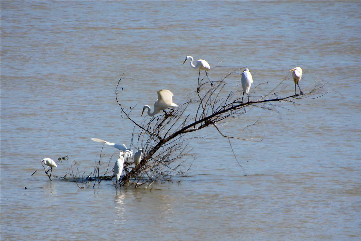 連日來,受強降雨影響,湖北省十堰市鄖陽湖國家濕地公園水位回升,公園內出現較多島嶼和淺灘,吸引大批鷺鳥來此覓食。該公園為南水北調中線工程核心水源涵養地,生態水域面積1743.6公頃,其中濕地面積1404.09公頃,濕地率80.53%。
