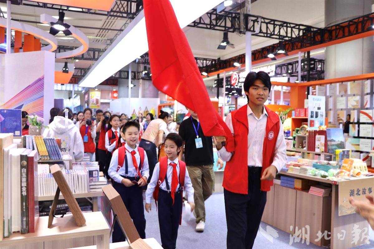 活動首站設在武漢書展,華中師范大學新聞傳播學院紅心宣講團帶領武漢市江岸區長春街小學、硚口區東方紅小學、武漢英中學校等8所中小學的學生,參觀了“真理之光”“三大精神”“學習強國數字體驗”“倍閱書店紅色主題圖書文創”等特色展區,通過紅色文化講解、情景問答、大手拉小手共讀紅色經典、紅色情景劇表演、紅色經典電影配音秀等,引導青少年堅定理想信念、厚植愛國情懷。