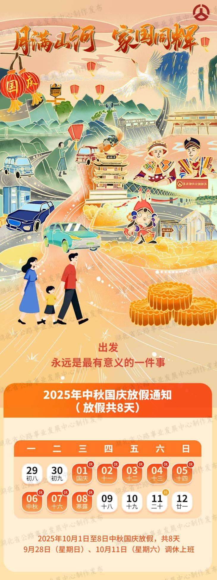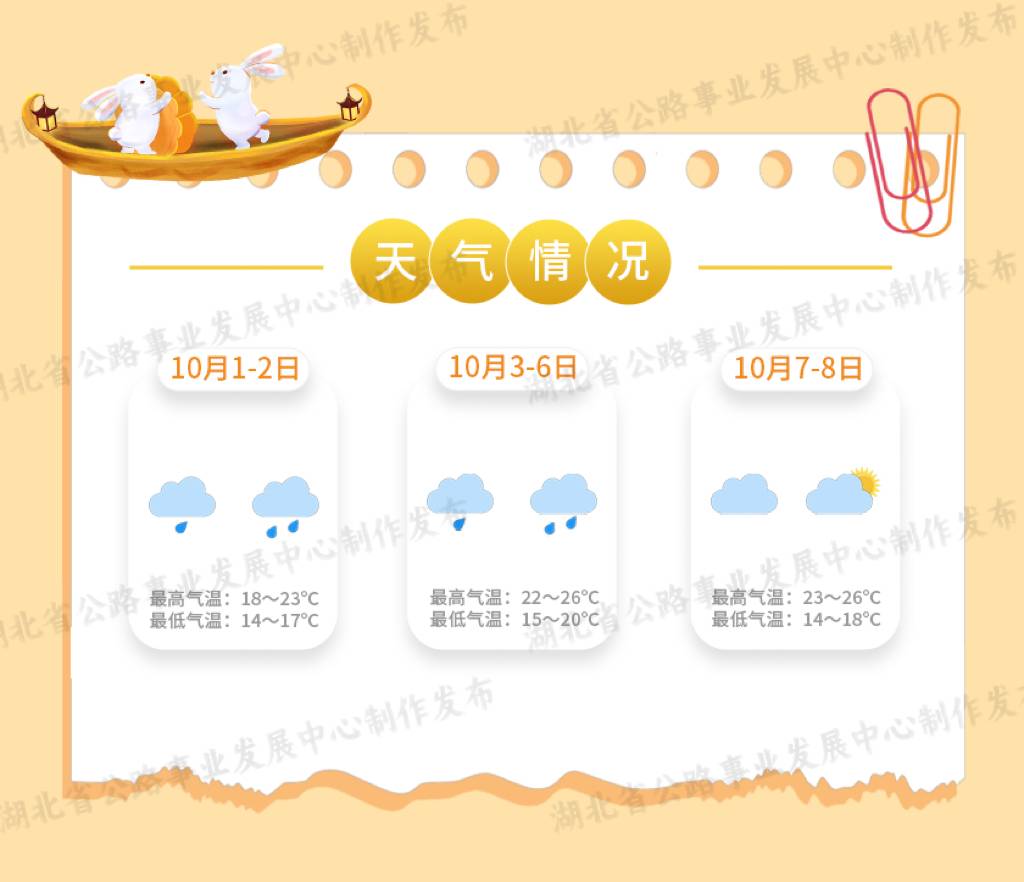 湖北日報訊 (記者戴輝、通訊員田臣、楊冰華、徐晨?。?025年中秋國慶假期即將到來,放假時間為10月1日至10月8日,收費公路對7座及以下小型客車免費通行。湖北省公路事業(yè)發(fā)展中心預計,今年中秋國慶期間路網流量較平日大幅增長,社會公眾探親訪友、度假旅游等中短途出行需求將會集中釋放,省內各市州周邊路段和通往省內知名景區(qū)路段的交通流量將出現(xiàn)明顯增幅,省內國高網、國省干線、武漢市周邊路段易出現(xiàn)不同程度的擁堵緩行。
