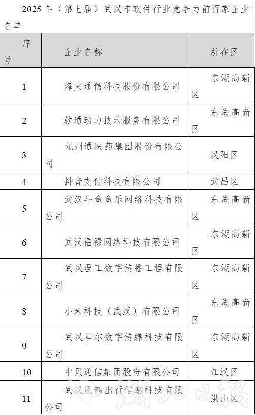 湖北日?qǐng)?bào)訊(記者張倩倩、通訊員蘭子君)9月26日,2025年第七屆武漢市軟件行業(yè)競(jìng)爭(zhēng)力前百家企業(yè)榜單在武漢市江漢區(qū)正式發(fā)布。本屆百?gòu)?qiáng)企業(yè)軟件業(yè)務(wù)收入總額達(dá)1533.7億元,同比增長(zhǎng)11.2%,占全市軟件行業(yè)總收入43.56%,展現(xiàn)出頭部企業(yè)強(qiáng)勁帶動(dòng)能力。