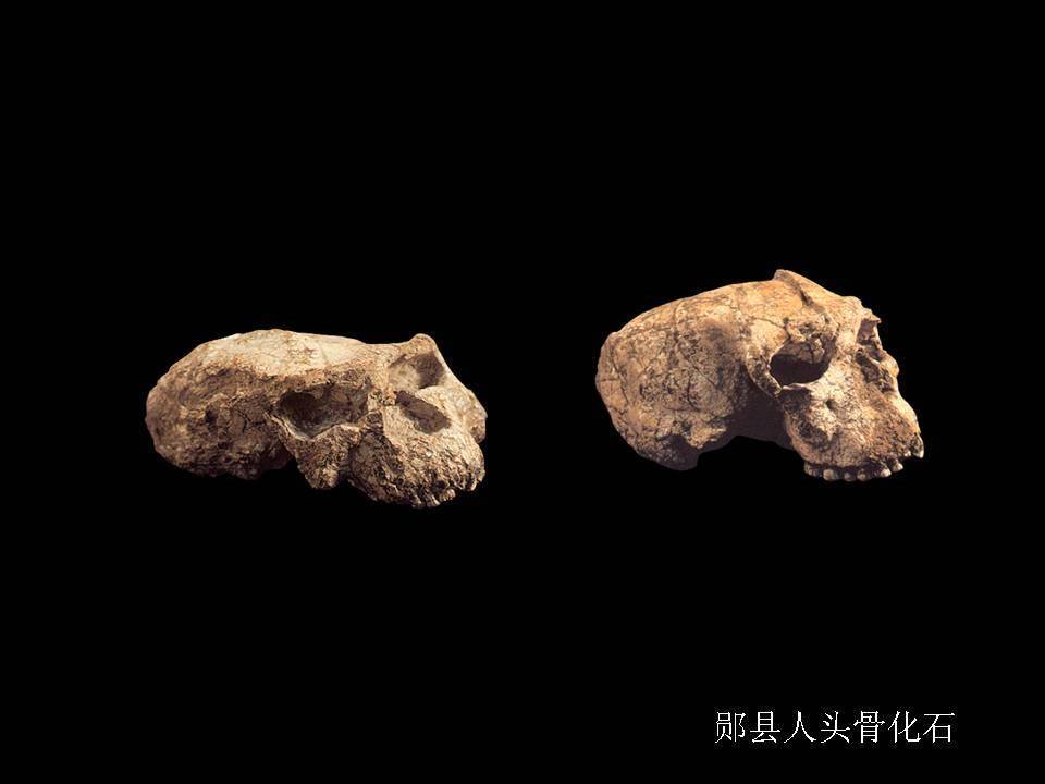 鄖縣人1號頭骨化石(左)、鄖縣人2號頭骨化石(右)