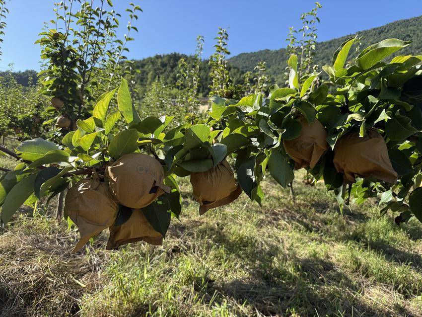 百羊寨村百羊寨坪海拔約900米,山高田少,光照充足,晝夜溫差大,非常適宜林果種植。2021年,村兩委組織部分代表赴巴東考察小水果產(chǎn)業(yè),依托“黨支部+興村公司”發(fā)展模式,引進(jìn)金果梨樹苗試種。經(jīng)過4年精心管護(hù),今年已進(jìn)入盛果期,結(jié)出的果實(shí)汁多味甜、品質(zhì)上乘,單個梨平均重量約0.8斤。