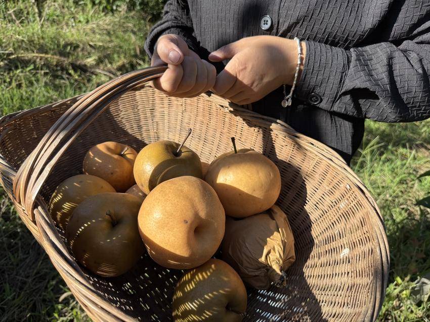 金果梨成熟了,村干部與駐村工作隊(duì)員紛紛利用業(yè)余時間積極參與采摘、分揀和包裝。為了打開銷路,并通過拍攝短視頻、圖片等方式在微信朋友圈、抖音上廣泛宣傳。很快,百羊寨村種出金果梨的消息就傳開了。憑借清甜多汁、果香濃郁的出色口感,金果梨尚未出村便已“未采先火”,贏得了眾多消費(fèi)者的青睞,訂單紛至沓來。梨園的發(fā)展還帶動了本村10余戶村民就近務(wù)工,有效拓寬了增收渠道。
