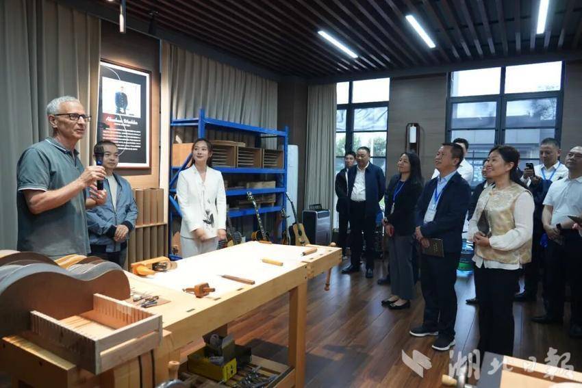 觀摩團一行深入松滋市文化創新產業園,聽取關于該市通過優化營商環境、吸引優質項目、培育產業集群,推動文化創意產業從無到有、快速發展的歷程介紹。在桐馨樂器,觀摩團走進生產車間和產品展廳,與企業負責人、世界級吉他制作大師亞伯拉罕等技術專家進行現場交流,詳細了解松滋市吉他等特色文化產品的研發設計、生產工藝、市場銷售及品牌建設情況。