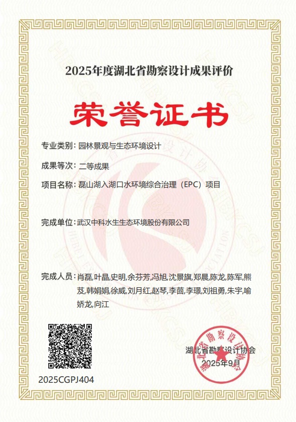 近日,2025年度湖北省勘察設(shè)計成果評價活動結(jié)果正式公布。武漢中科水生生態(tài)環(huán)境股份有限公司憑借深厚的技術(shù)積淀與卓越的創(chuàng)新設(shè)計能力脫穎而出,申報的“磊山湖入湖口水環(huán)境綜合治理(EPC)項目”榮獲二等獎,“西荊河河道綜合治理與生態(tài)修復(fù)項目”榮獲三等獎,一舉實現(xiàn)我公司在該獎項上的歷史性突破,為水環(huán)境治理領(lǐng)域再添亮眼成績。