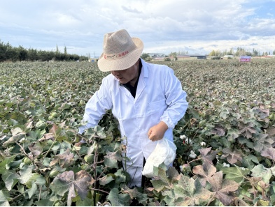 楚創高科技術員張兵采摘棉籽