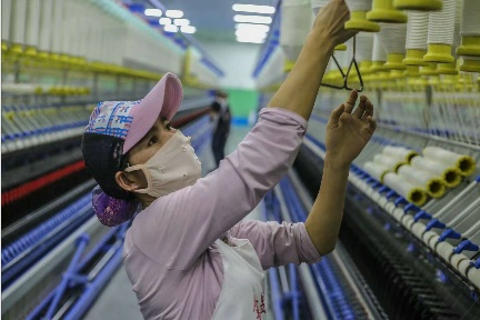 在博樂邊境經濟合作區,金鑫昱紡織的車間里,1250名員工正操作著40萬錠紡紗設備。90%的員工來自少數民族,夫妻工月收入超萬元。“我們不僅是辦企業,更是建家園,”企業負責人李斌說。