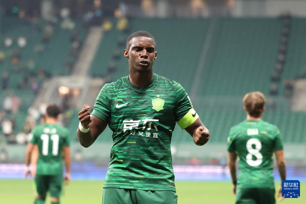 9月26日,北京國安隊球員法比奧(左)在進球后慶祝。