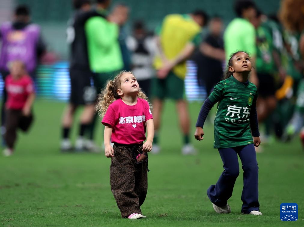 9月26日,兩名北京國安隊球員的孩子在比賽后。