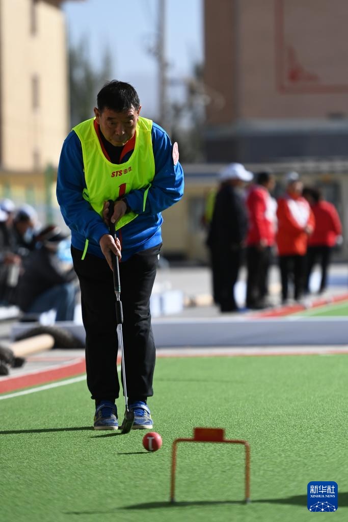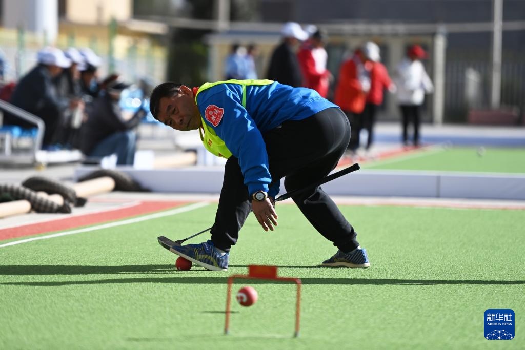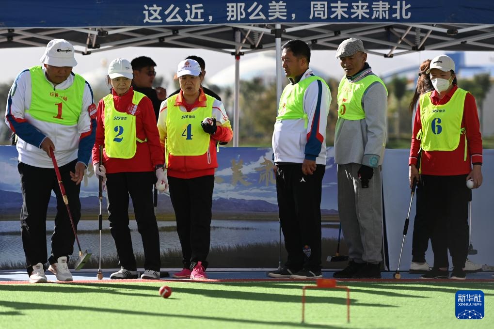 當日,2025年全國少數民族門球賽在甘肅省酒泉市肅北蒙古族自治縣開賽,共有來自青海、山東、陜西、湖南、新疆等地的32支隊伍共計200余名選手參賽。