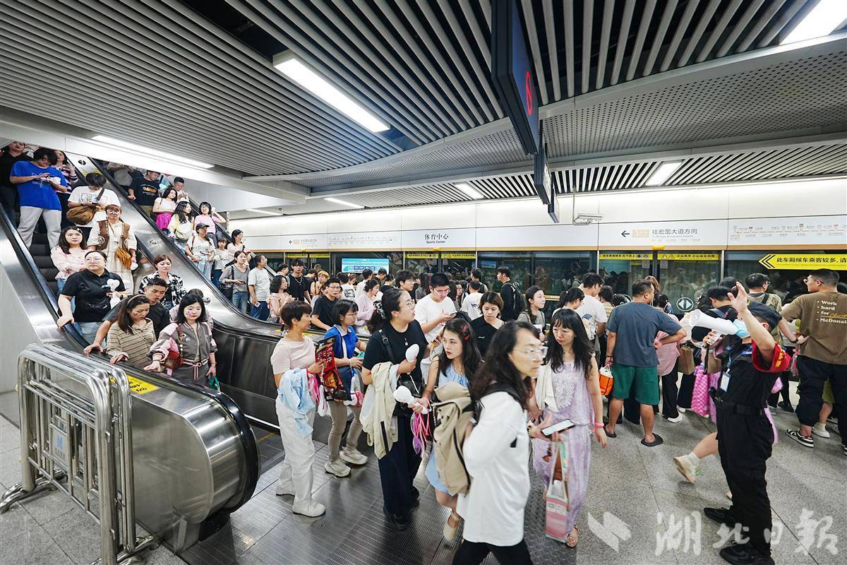 26日夜晚,地鐵3/6號(hào)線東風(fēng)公司站也迎來(lái)進(jìn)站客流小高峰,車站啟動(dòng)預(yù)案,保障乘客通行快速有序,期間6號(hào)線共加開(kāi)3趟臨客。