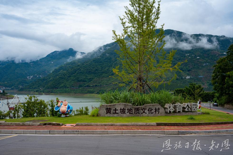 昔日的滑坡體上,黃土坡地質(zhì)文化村體育公園拔地而起。( 恩施日報全媒體記者 田景文 攝)