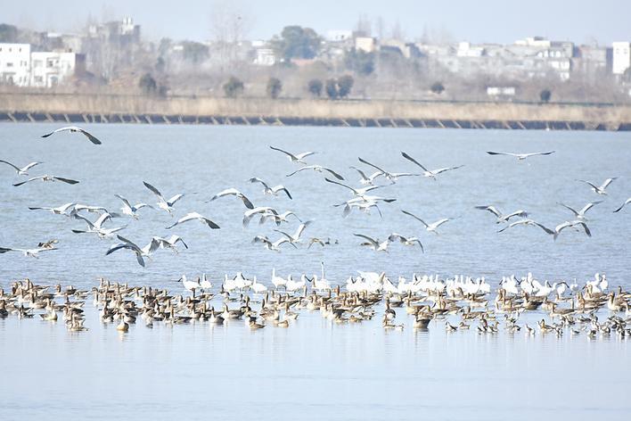 據(jù)介紹,張家湖是我國候鳥遷徙的重要驛站、越冬地,也是小天鵝、白琵鷺等珍稀鳥類越冬遷徙的中轉(zhuǎn)站和棲息地,目前,定期棲息有2萬只以上的水鳥。2023年底,有攝影愛好者在張家湖首次發(fā)現(xiàn)全球極危物種、國家一級保護鳥類青頭潛鴨。