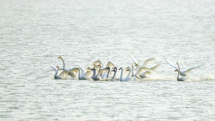 張家湖的小天鵝群。(資料圖片)