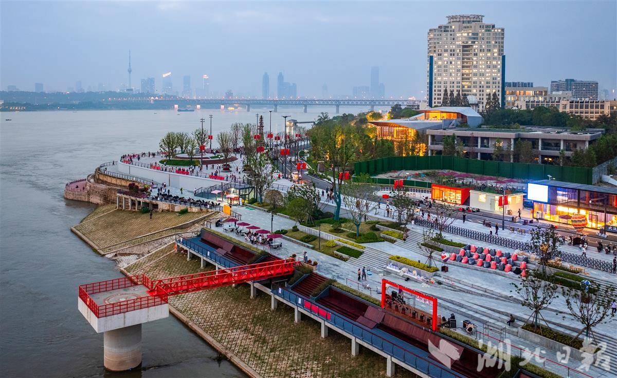 9月27日晚,市民在新建成的武昌灣1956公園休閑娛樂(lè)。武昌灣1956公園位于武漢長(zhǎng)江大橋和鸚鵡洲長(zhǎng)江大橋之間,是武漢百里長(zhǎng)江生態(tài)廊道的“最后一公里”。該江灘公園于9月28日試運(yùn)行,10月1日正式對(duì)外開(kāi)放。屆時(shí),這里將舉行落日音樂(lè)會(huì)、鋼琴演奏等活動(dòng),帶大家浪漫過(guò)節(jié)。(湖北日?qǐng)?bào)全媒記者 薛婷 攝)