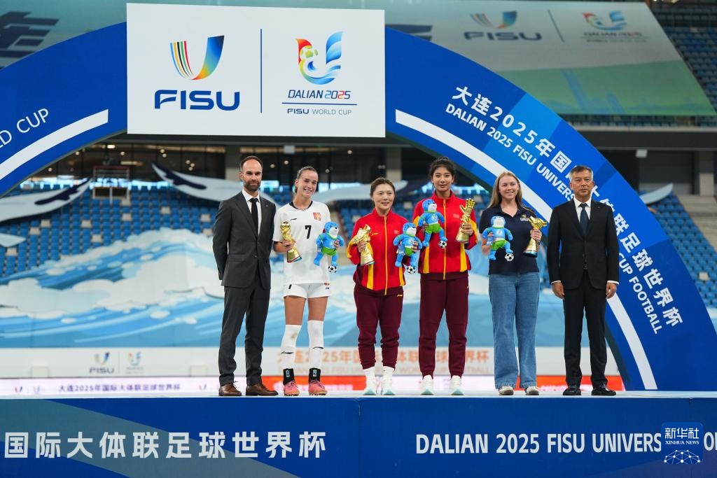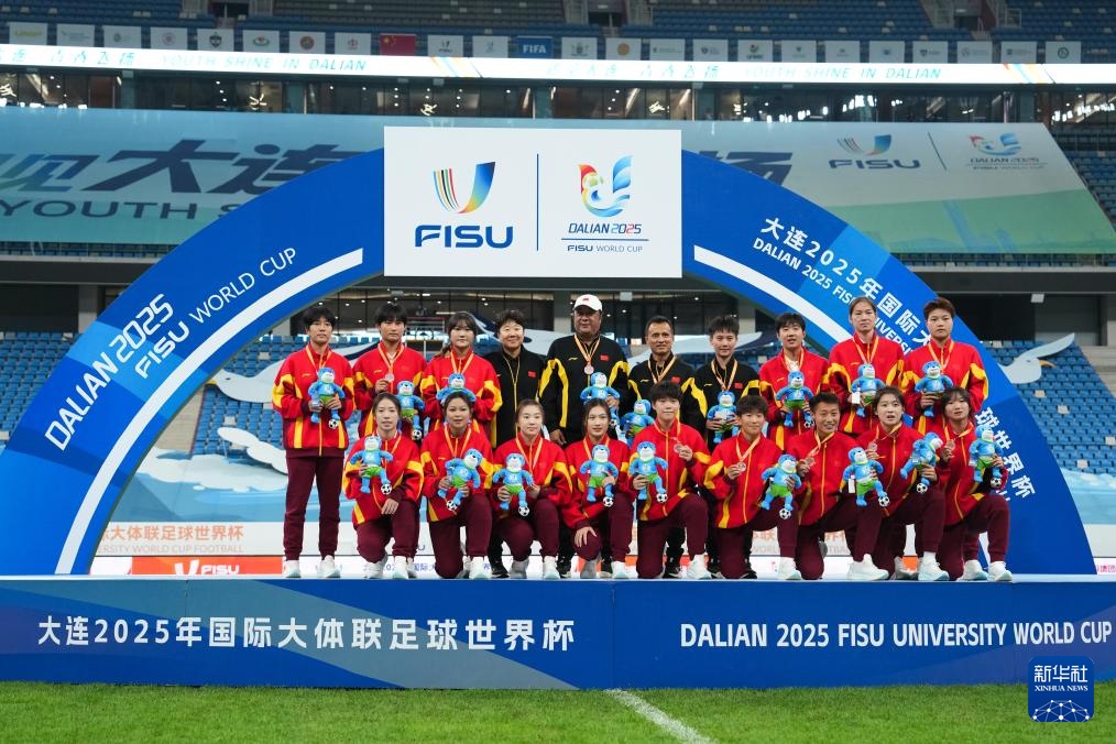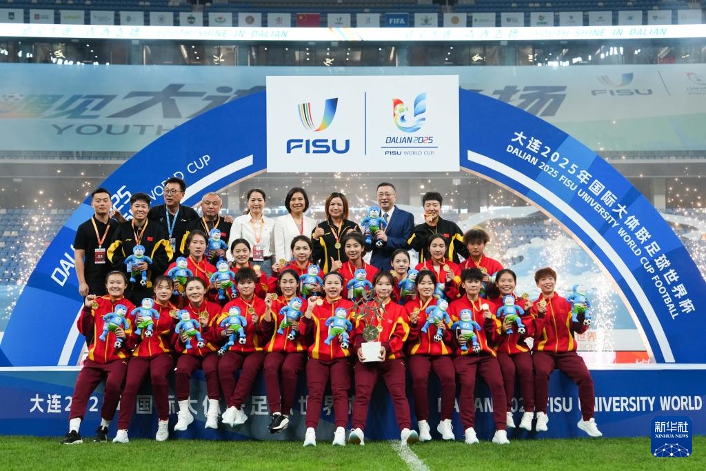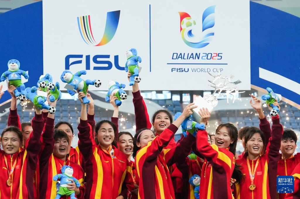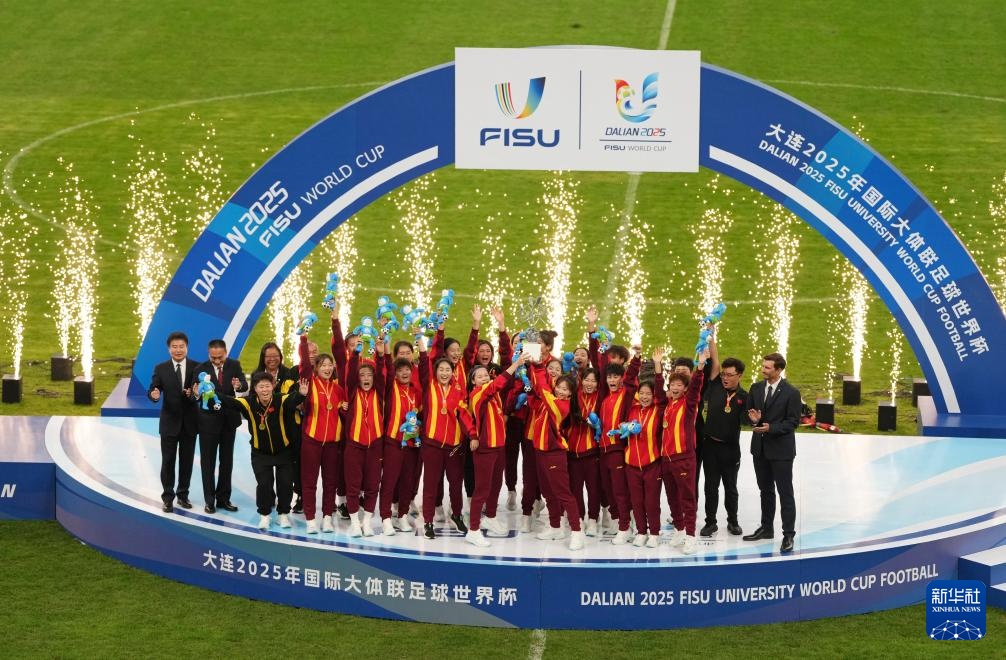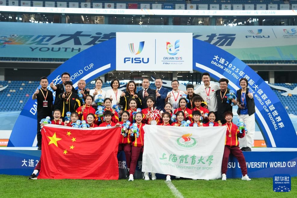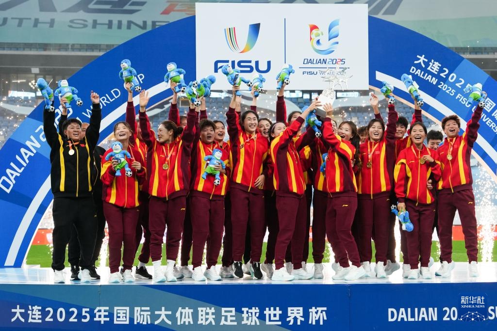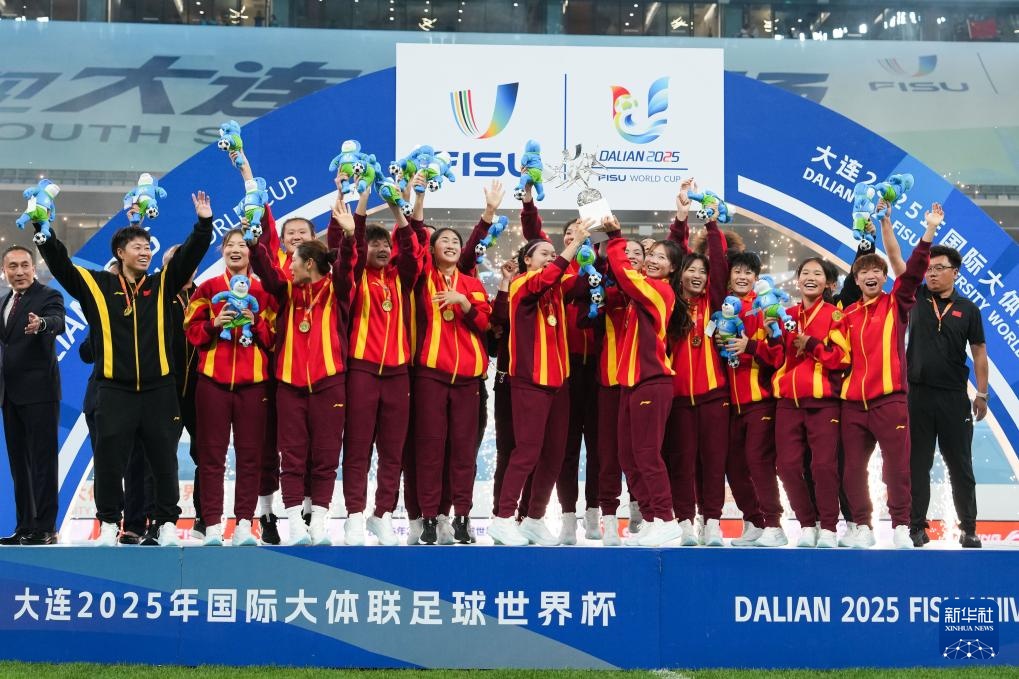 當(dāng)日,在大連舉行的2025年國(guó)際大體聯(lián)足球世界杯女足決賽中,中國(guó)上海體育大學(xué)女足3比1戰(zhàn)勝加拿大拉瓦爾大學(xué)女足,奪得冠軍。