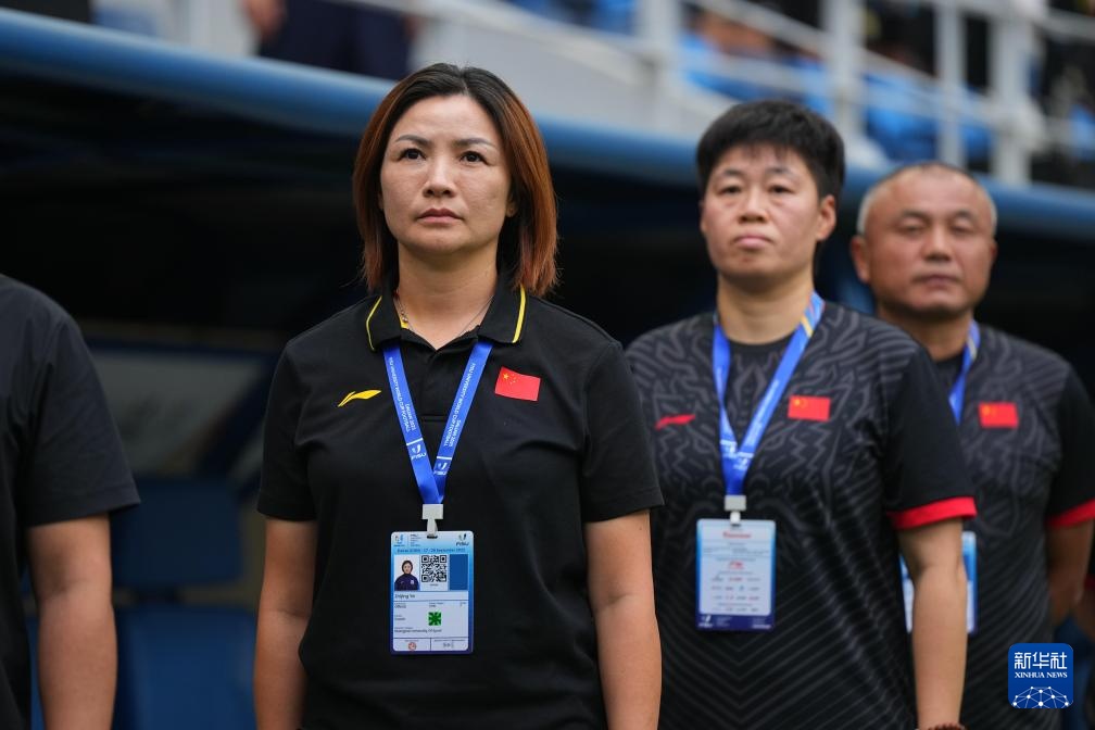 9月27日,上海體育大學(xué)女足主教練葉志競(jìng)(左)在賽前。